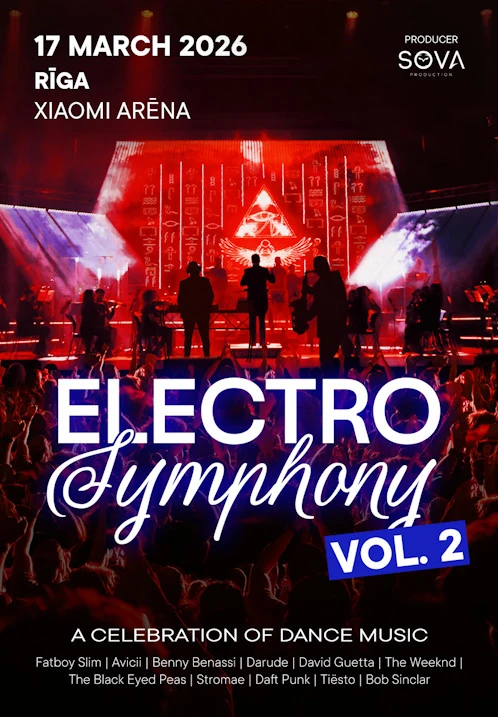 Balstoties uz izciliem panākumiem 2025. gadā un vairāk nekā 50 000 sajūsminātu skatītāju, Electro Symphony atgriežas 2026. gadā ar bagātinātu un pilnībā pārveidotu uzvedumu. Šoreiz orķestris prezentē vēl vairāk ikonisku skaņdarbu, kas aptver visu elektroniskās mūzikas vēsturi — no 1990. gadiem līdz mūsdienu lielākajiem hitiem. Īsta cieņas apliecinājums elektroniskās skatuves leģendām — Fatboy Slim, Avicii, Benny Benassi, David Guetta, Daft Punk, Stromae, The Weeknd, Bob Sinclar, Tiësto un daudzi citi — drosmīgi un emocionāli no jauna interpretēts simfoniskā orķestra, dīdžeja, dziedātāju un rokgrupas izpildījumā. 2026. gadā mēs atgriežamies ar pilnīgi JAUNU PROGRAMMU: Electro Symphony VOL. 2 — pavisam jauns šovs, drosmīga jauna nodaļa ELECTRO SYMPHONY vēsturē, radīts no nulles, lai pārsteigtu, aizkustinātu un iedvesmotu mūsu auditoriju kā vēl nekad!