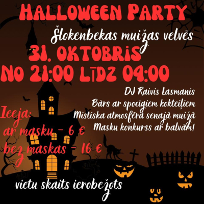 31. oktobrī no plkst. 21.00 Halovīna ballīte Šlokenbekas muižas velvēs.