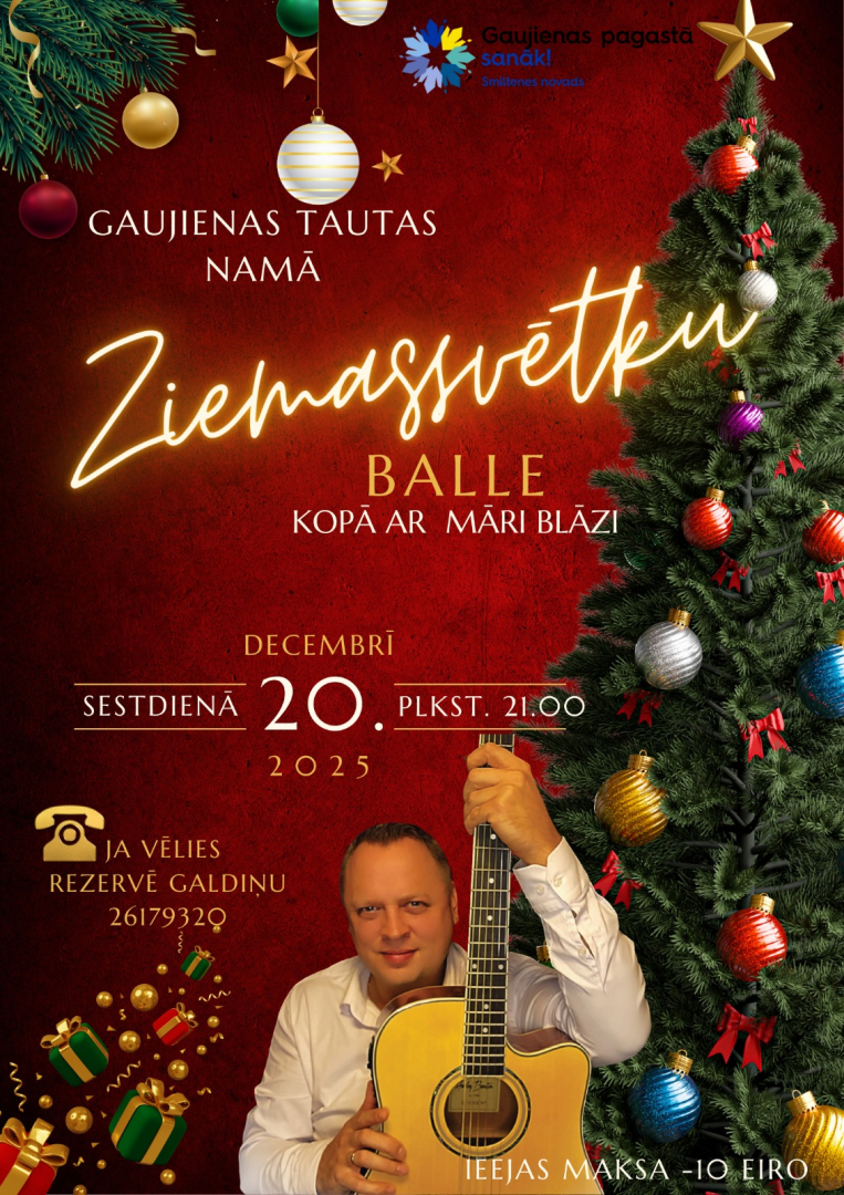 20. decembrī pulksten 21.00 Gaujienas Tautas namā Ziemassvētku balle ar Māri Blāzi