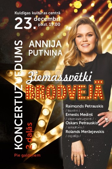 “Vismaz vienu reizi gadā vēlos piedzīvot mazos Brodvejas svētkus Latvijā. Pasaules mūziklu hiti pie mums izskan reti, bet visā pasaulē tie ir ārkārtīgi populāri”, stāsta Annija. Koncertā skanēs arī skaistākās Ziemassvētku melodijas, kas zināmas visā pasaulē, “Jingle Bells”, “What Child Is This”, un tās, kas radītas tepat Latvijā. “Dosimies muzikālā ceļojumā no pirmssvētku drudža pilsētā, līdz bērnības piparkūku smaržai un sniegotajiem mežiem, sajūtot mieru, prieku un kopā būšanu”, sola šīs programmas “pērle” un idejas autore – dziedātāja Annija Putniņa, kura piedalījusies pasaulslavenos mūziklos un studējusi mūzikla žanru Karaliskajā Mūzikas Akadēmijā Londonā.