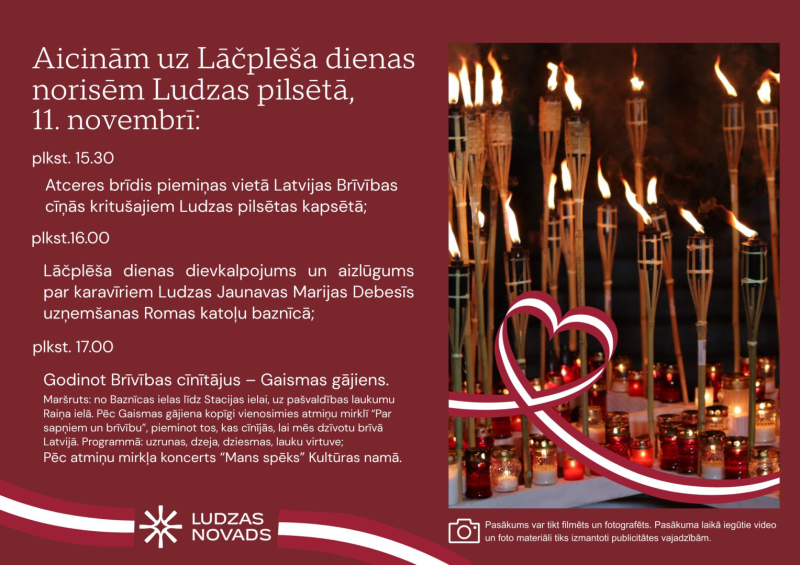 plkst. 15.30 – atceres brīdis piemiņas vietā Ludzas kapsētā Latvijas Brīvības cīņās kritušajiem;