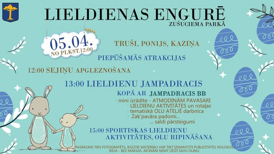 5. aprīlī no plkst. 12.00 Zušuciema parkā, Engurē, Lieldienu svinības!