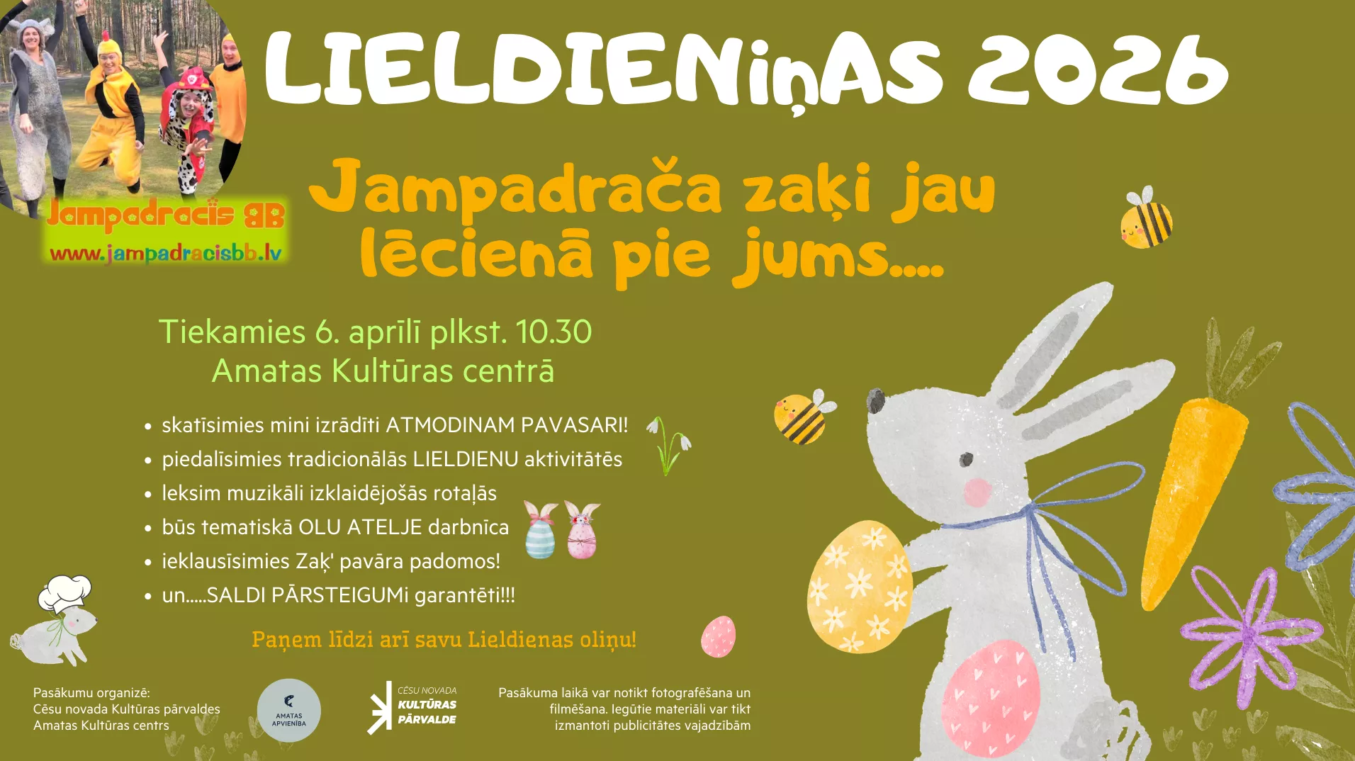 Amatas Kultūras centrs 6. aprīlī plkst. 10.30 aicina uz Lieldienu pasākumu.