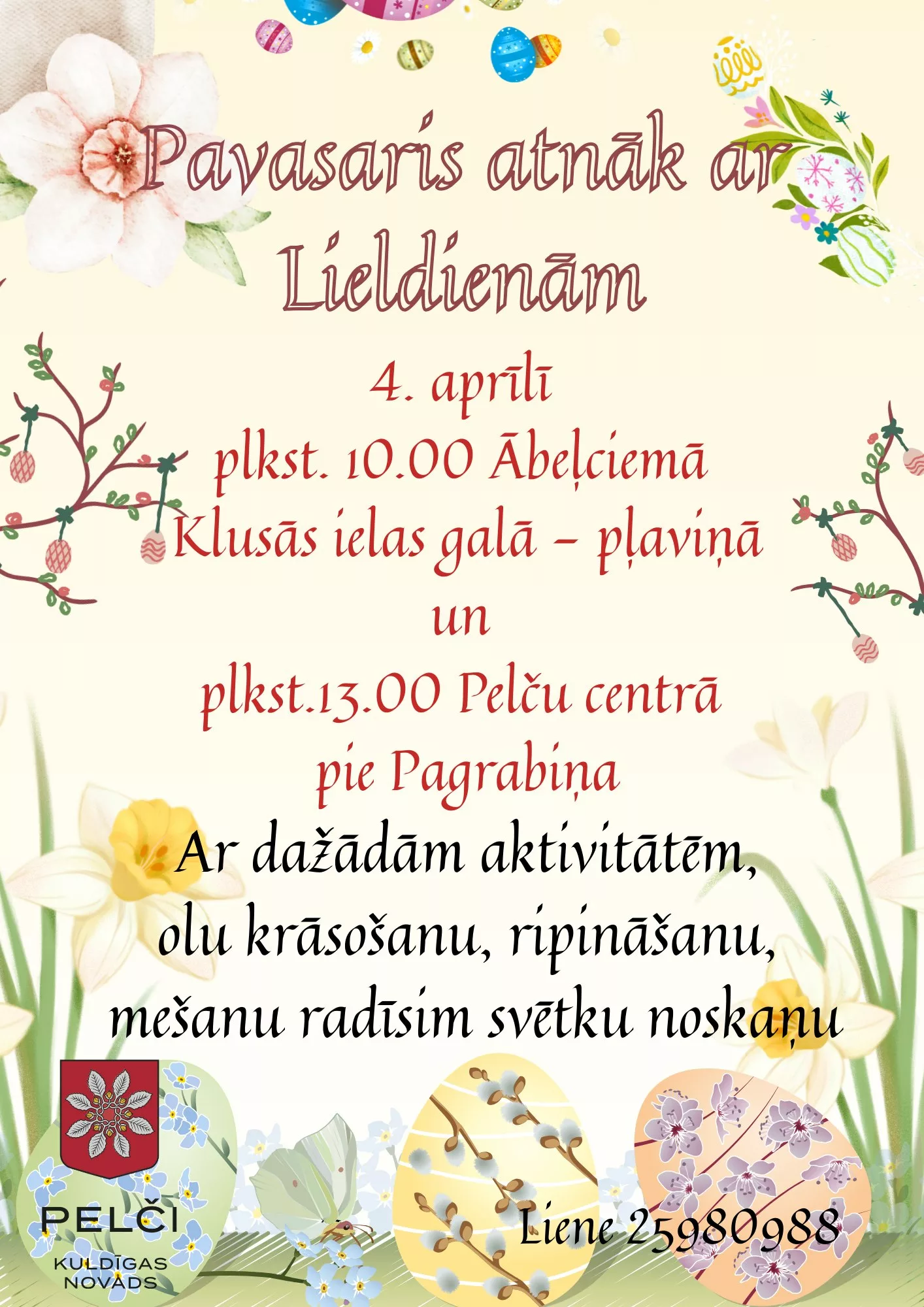 Aicinām iedzīvotājus un viesus uz pavasarīgām Lieldienu svinībām Pelču pagasta Ābeles ciemā. Pasākuma ietvaros plānoti svētki un dažādas brīvdabas aktivitātes, kas piemērotas ģimenēm un bērniem, lai kopīgi atzīmētu pavasara atnākšanu.