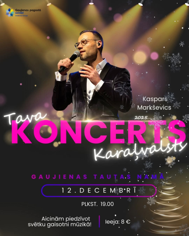 12. decembrī pulksten 19.00 Gaujienas Tautas namā dziedātāja un mūziķa Kaspara Markševica koncerts “Tava karaļvalsts”. Ieejas maksa – 8 eiro.