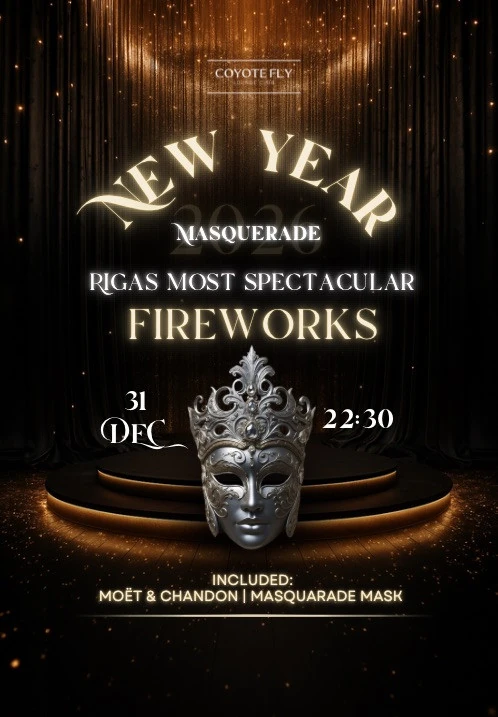 Pievienojies Rīgas iespaidīgākajai Jaunā gada svinību naktij elegantā un noslēpumainā maskarādes gaisotnē. Ienirsti Coyote Fly greznajā atmosfērā, kur Jauno gadu sagaidīsim ar stilu, šarmu un neaizmirstamiem mirkļiem.
