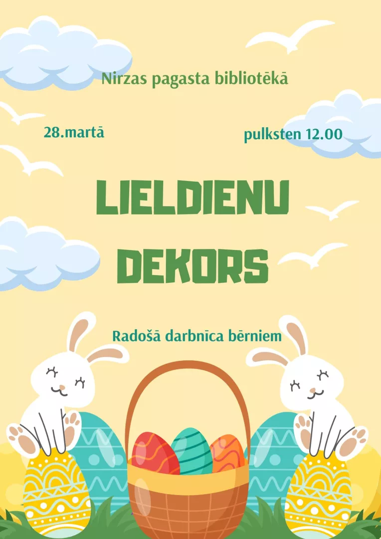 28.03. plkst. 12.00 Radošā darbnīca bērniem “Lieldienu dekors” Nirzas pagasta bibliotēkā.