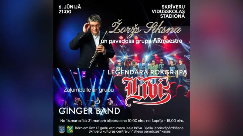 6. jūnijā plkst. 21.00, Skrīveru vidusskolas stadionā – Skrīveru pagasta svētku vakara koncerts un balle.