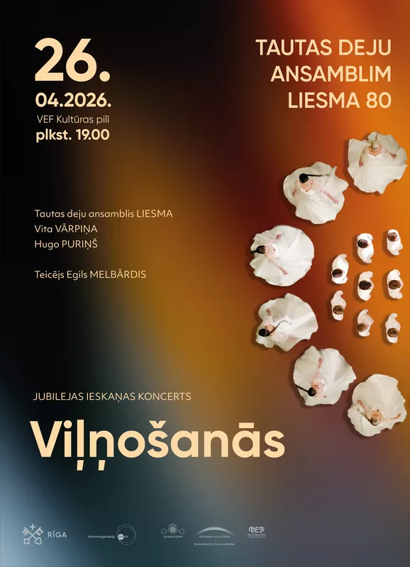 Tautas deju ansamblis “Liesma” ar diviem krāšņiem koncertiem šogad atzīmē savas darbības 80 gadu jubileju. 2026. gada 26. aprīlī plkst. 19.00 VEF kultūras pils Lielajā zālē Tautas deju ansamblis “Liesma” izdejos 80 jubilejas ieskaņas koncertu “Viļņošanās”.