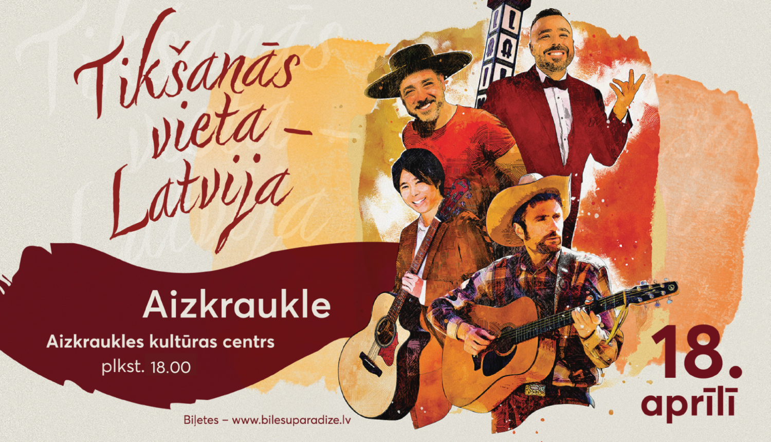 Četri Latvijā iemīļoti dziedātāji – itālis ROBERTO MELONI, spānis HAVJERS FERNANDESS, gruzīns ŠOTA ADAMAŠVILI un japānis MASAKI NAKAGAWA, kurus vieno mīlestība pret Latviju un latviešu kultūru, satiksies uz vienas skatuves viegli dzirkstošā koncertprogrammā “TIKŠANĀS VIETA – LATVIJA”!