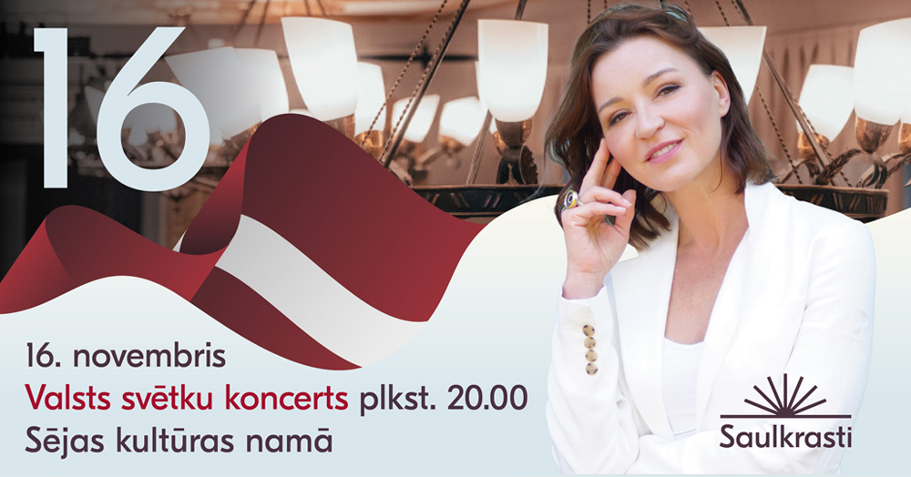 16. novembrī plkst. 20.00 Sējas kultūras namā aicinām uz Valsts svētku koncertu “Manai dzimtenei” ar dziedātāju, kura nesusi Latvijas vārdu pasaulē ar dziesmu – Mariju Naumovu un pavadošo grupu.