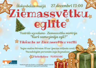 27. decembrī plkst. 13.00 Šlokenbekas muižā Ziemassvētku eglīte bērniem.