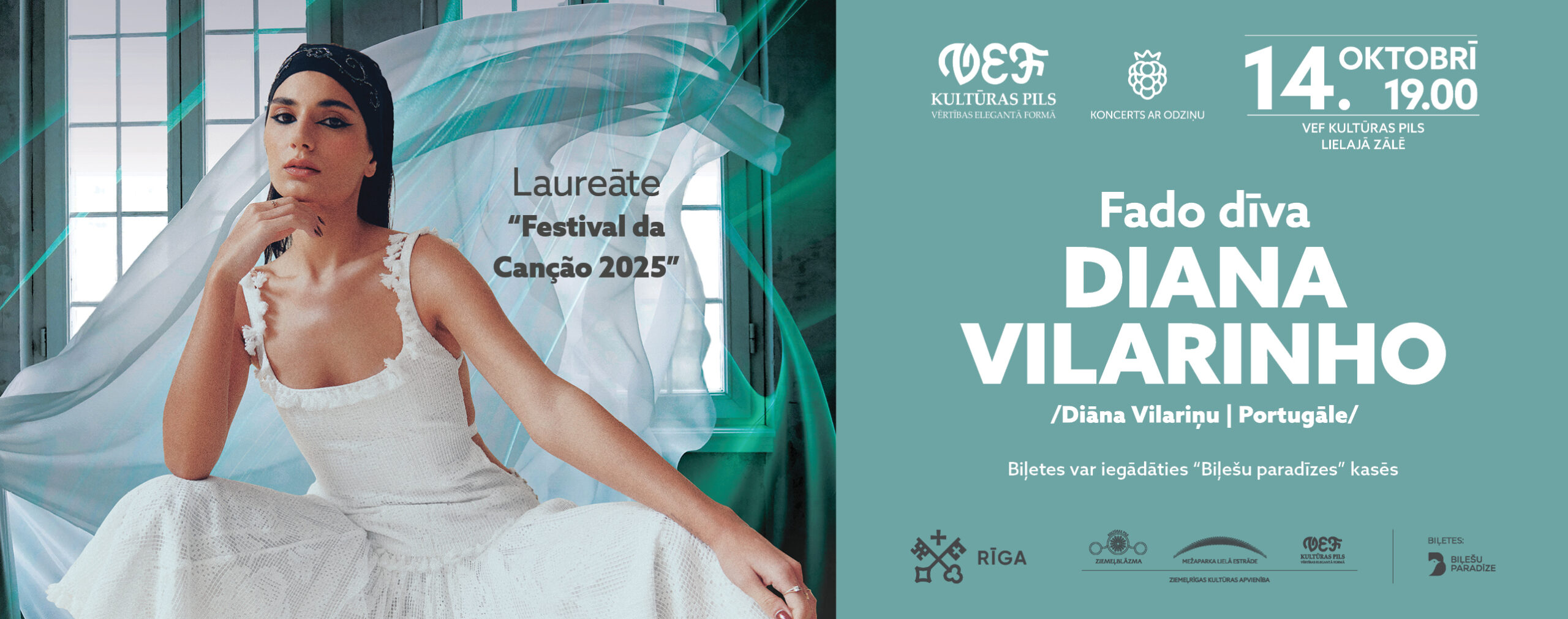 Rīga, VEF kultūras pils14. oktobrī plkst. 19.00 VEF Kultūras pilī klausītājus gaida īpašs muzikāls piedzīvojums – uz skatuves kāps viena no spilgtākajām mūsdienu Portugāles fado māksliniecēm Diāna Vilariņu (Diana Vilarinho). Ziemeļrīgas kultūras apvienība aicina doties jutekliskā ceļojumā uz Lisabonas sirdi, kurā mūzikā satiekas liktenis, ilgas un dvēseliska atklātība.